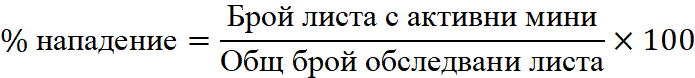 По листа – отчита се общият брой обследвани листа и броят на листата с мини;