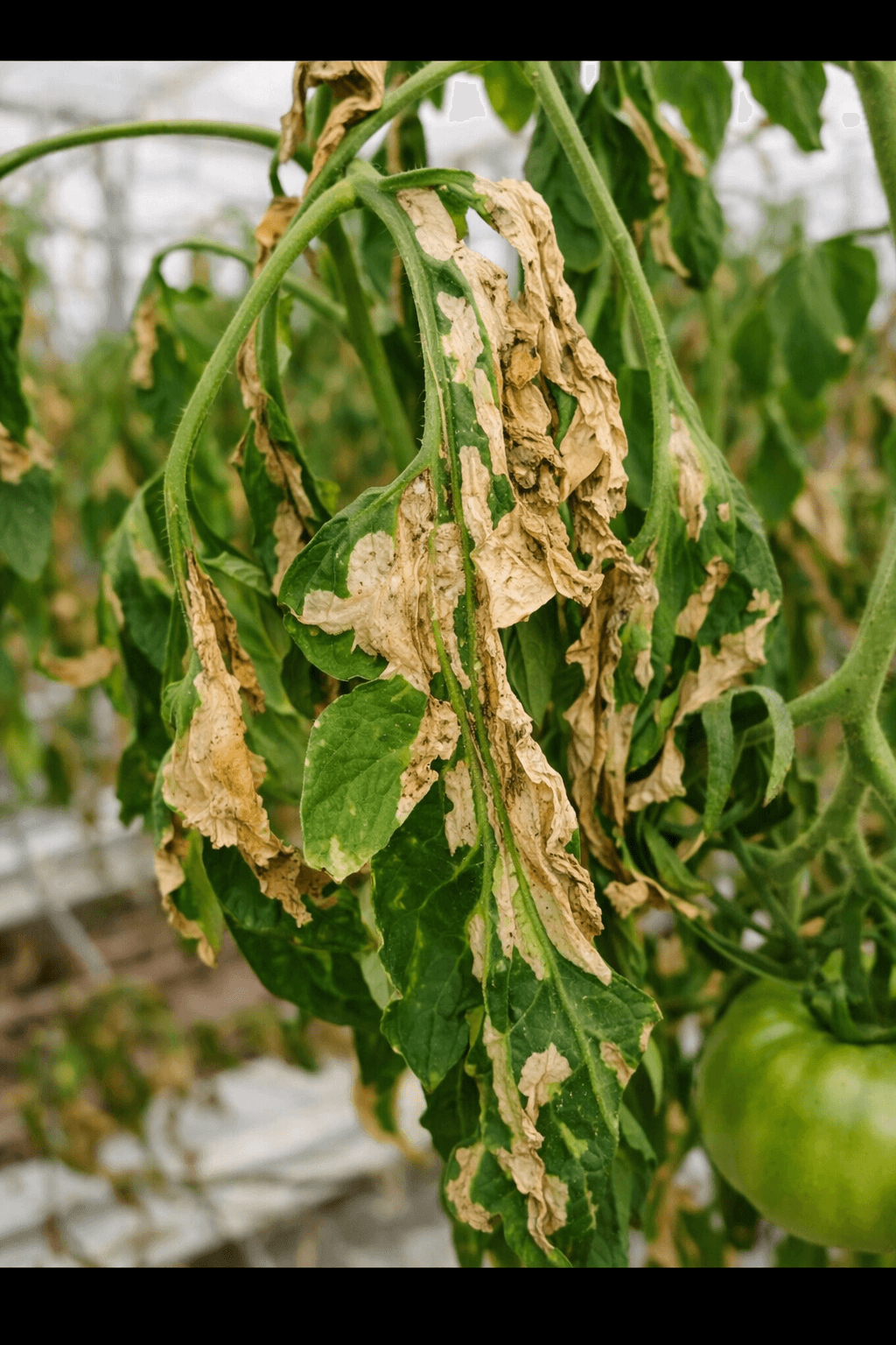 Когато растенията са силно нападнати, пораженията се разпространяват повсеместно.