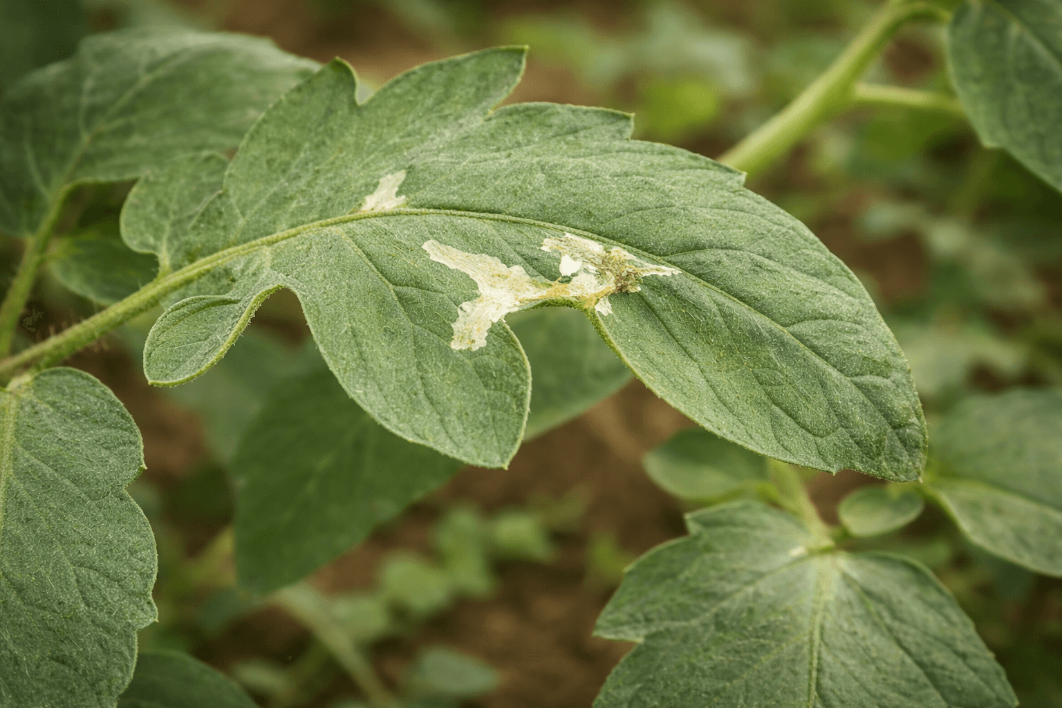 Tuta absoluta (доматеният миниращ молец) е опасен вредител по доматите, чиито ларви минират листата, повреждат стъблата и се вгризват в плодовете, което може да доведе до много големи загуби в производството.
